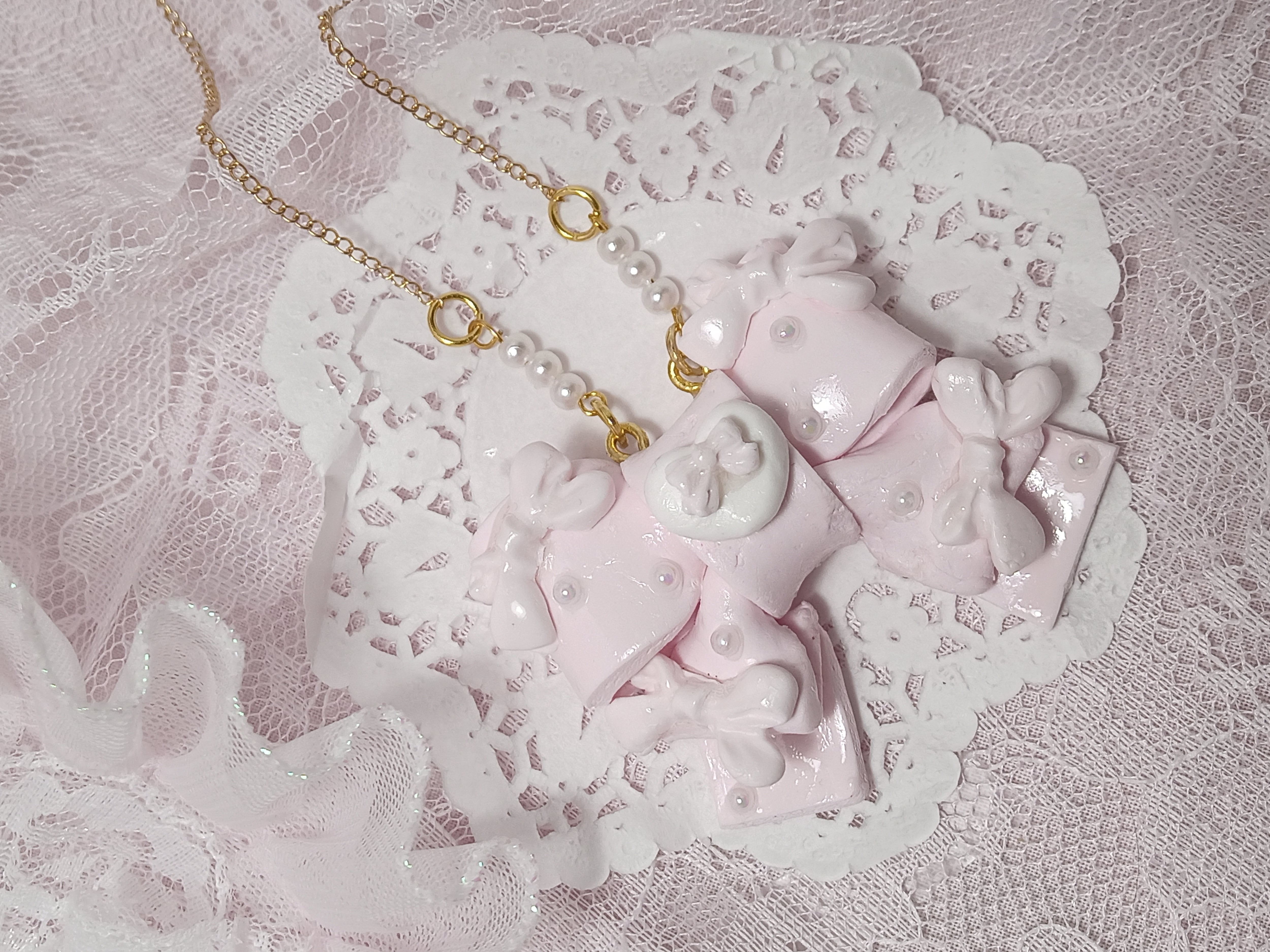 バレエコアや量産型、ロリータなどのファッションにあわせやすいかわいいアクセサリーが欲しいなぁと思ったのが制作のきっかけです♡