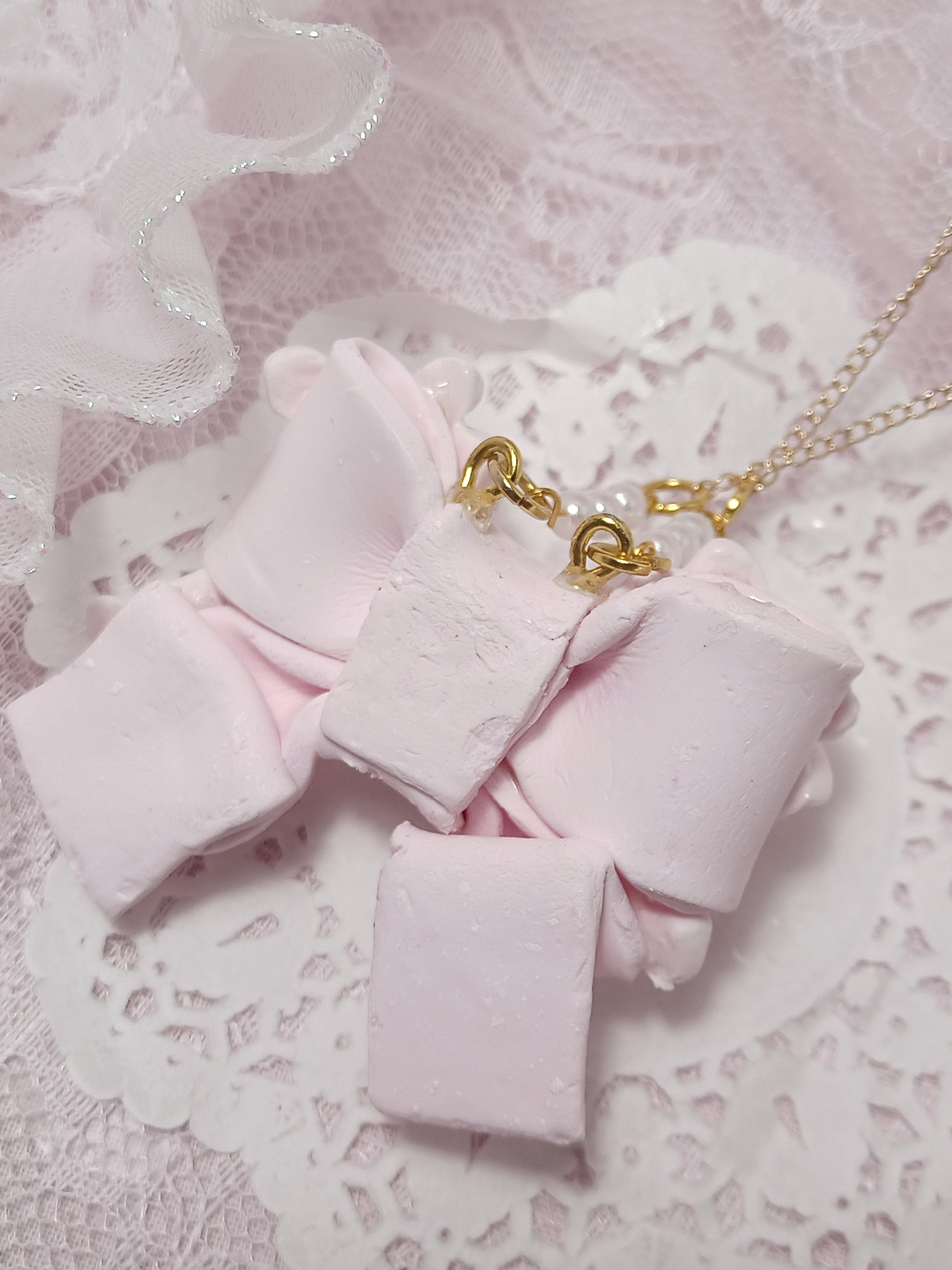 きらきら♡パールリボンネックレス