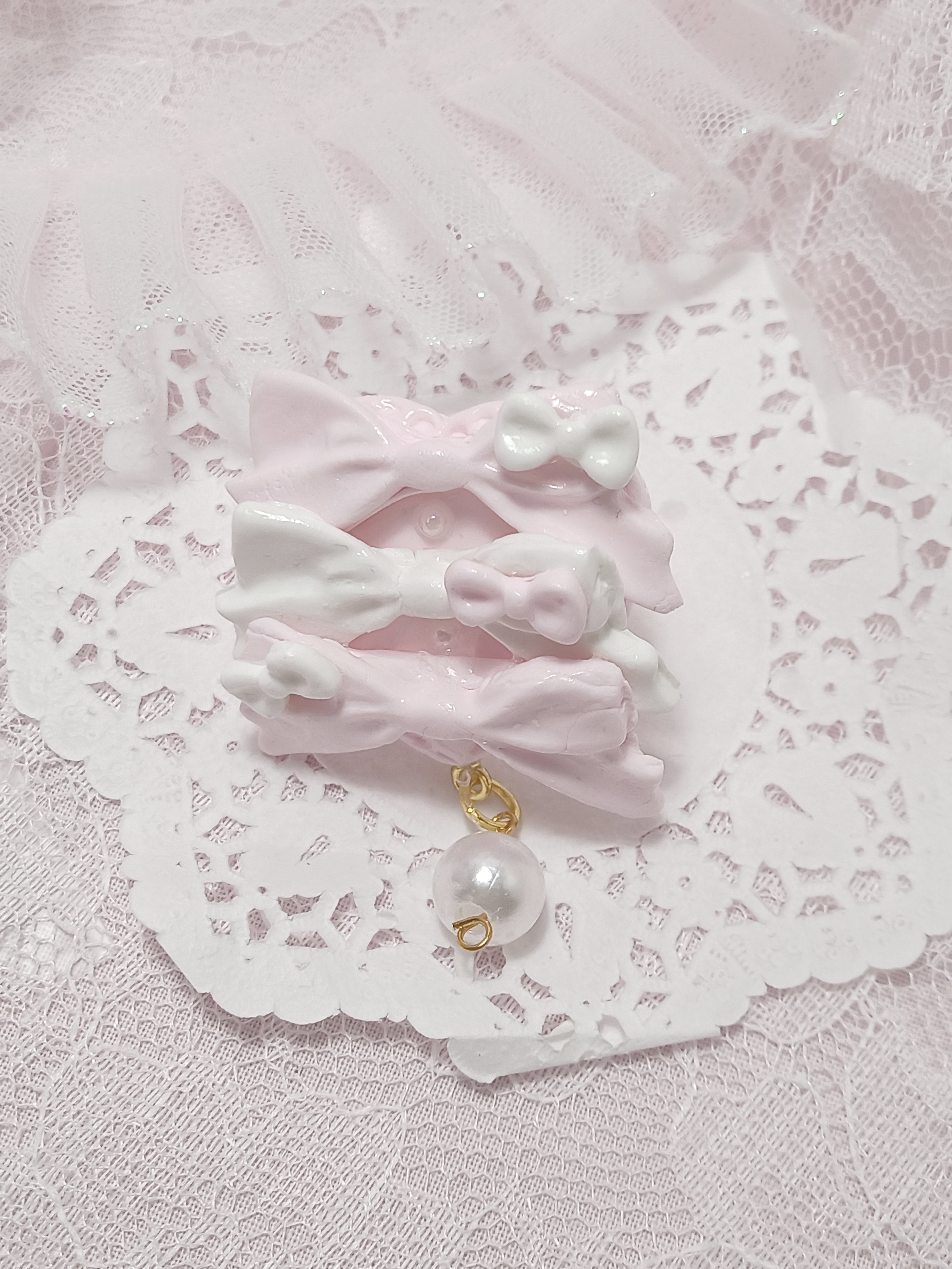 バレエコアや量産型、ロリータなどのファッションにあわせやすいかわいいアクセサリーが欲しいなぁと思ったのが制作のきっかけです♡